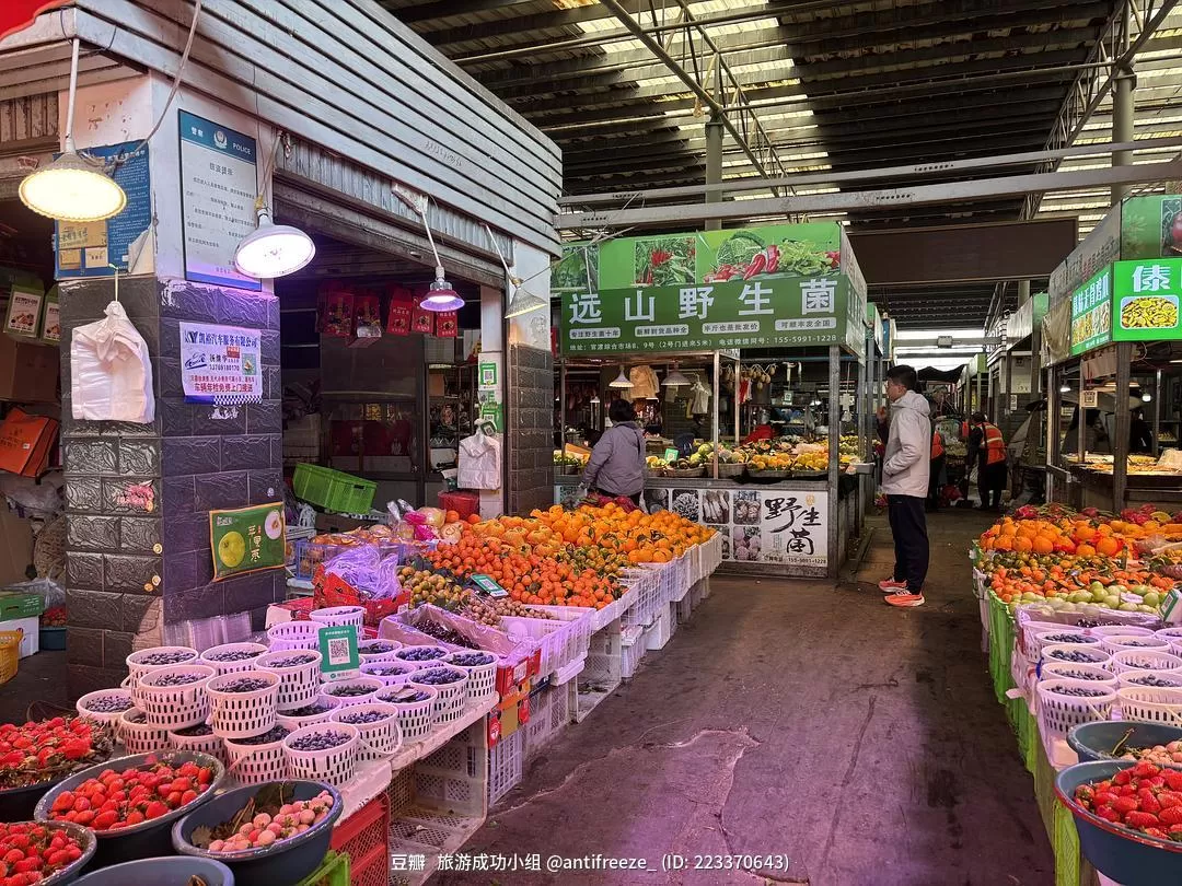 从官渡古镇的古镇夜市入口拐出去进了一个菜市场。