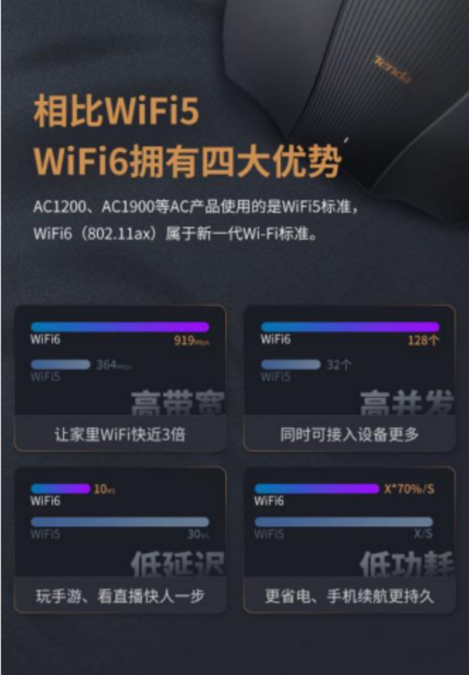 恰如4G到5G的升级,WiFi6在速度和体验上提升无可挑剔。双频3000M,Intel 双核1.6GHz处理器,腾达真WiFi6路由器AX12,家庭宽带升级首选路由器,带您步入疾速千兆时代。这也是小编我重点推荐的一款!