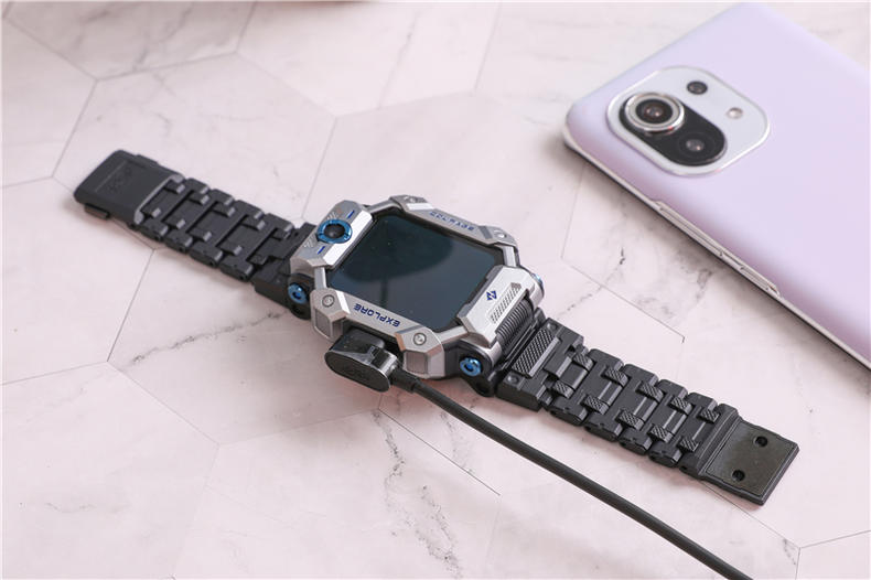 这款手表给我的第一印象有点像那种户外登山用的手表,看着就很耐脏耐造。机甲风表盘设计配合上厚实的橡胶包裹,看着很帅,儿子总说“它和奥特曼变身器一样帅”。质感卓越的同时耐摔耐脏耐造,太适合小朋友使用了。我甚至感觉它一直用到小学毕业都不会坏,看着太结实了。