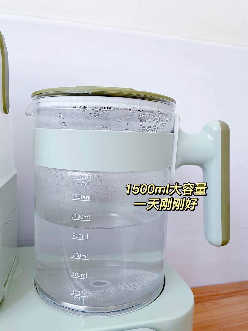 小壮熊调奶器奶瓶消毒器二合一KH-8869的右边是可以烧水调奶,煮沸除氯,解冻暖奶都可以。1500ml大容量水壶,一天一壶刚刚好。45℃用来给宝宝泡奶粉,70℃煮一壶养生茶;90℃来一壶热饮,一壶满足全家需求,真的是绝绝子。而且有消毒功能哦,喝的健康放心。