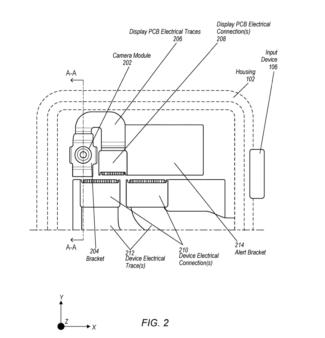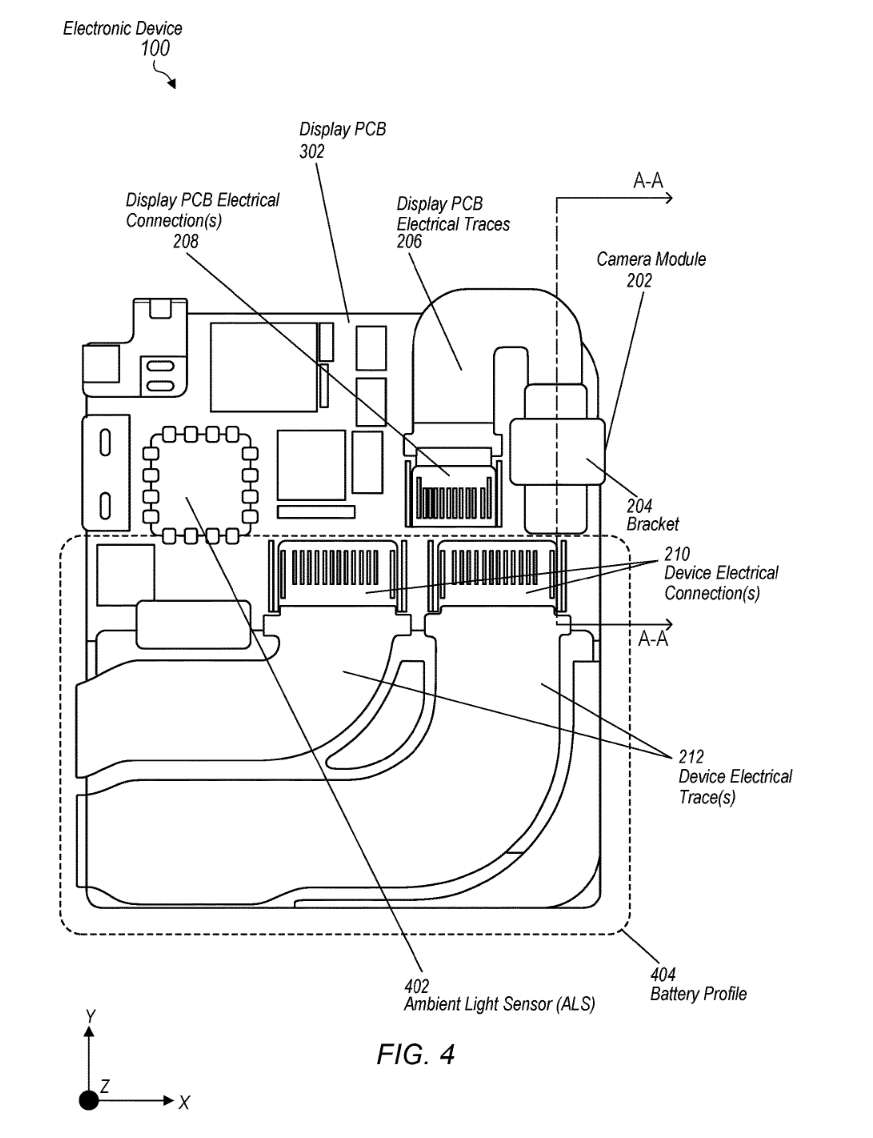 根据专利设计草图,摄像头可以隐藏在屏幕下方,显示面板可包括一个高透光区,在不影响日常使用的情况下,增加到相机模块的透光率。