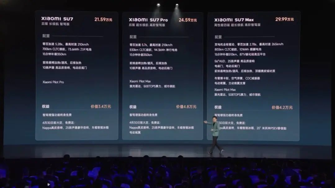 小米 SU7 发布会现场,蔚小理三家创始人均到场观礼