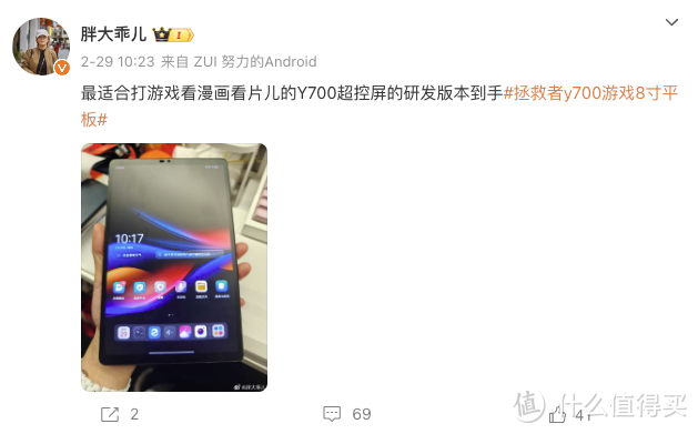 然而,后续通过从联想消费营销总监 @胖大乖儿 的微博中我们得知,这款新拯救者Y700平板并非全新版本,而是“换屏版”。在核心配置上,它延续了目前在售的拯救者Y700平板的性能,只是将屏幕更换为了雾面屏,为用户带来不同的视觉体验。