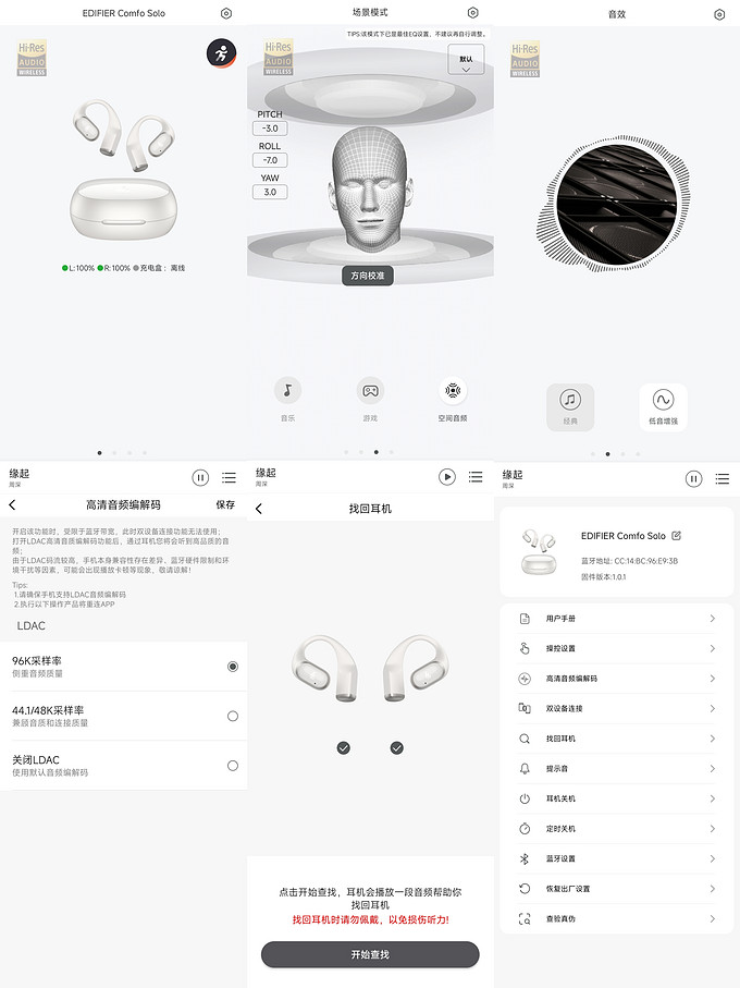除此之外漫步者有自己专属的APP,连接漫步者ComfoSolo可实现触控指令设定、音效选择、场景模式选择、呼吸灯色彩切换,还有找回耳机等功能,个性化设置十分便捷。电量方面大可放心啦,告别频繁充电,不但配合充电盒可达42h的超长续航,同时具备了快充功能,充电一刻钟畅想3h,冲杯咖啡的功夫咱又能接着听啦,你说巴适不巴适!