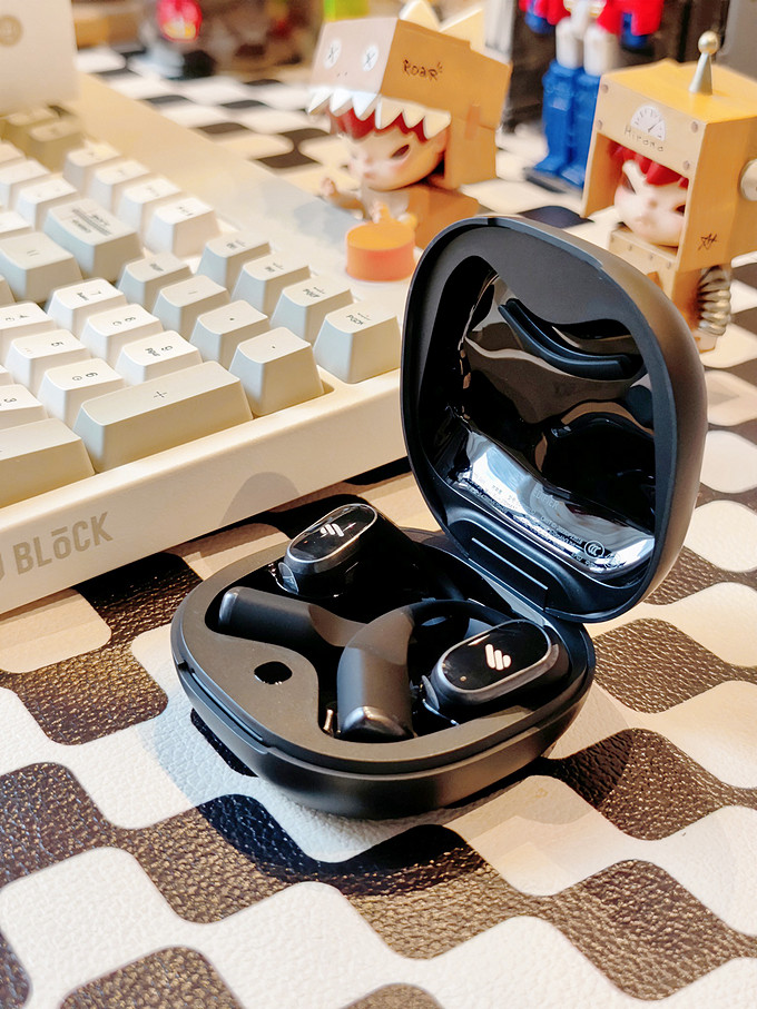 漫步者ComfoSolo有三款颜色,小雪选择的是超酷的经典黑色,充电舱与耳机的外观设计都采用了亮面与哑光的结合,在视觉上更有层次感,将灵动与沉稳交叠在一起,更显精致与时尚,不单是耳机更是成为了潮流穿搭中的一抹亮色。
