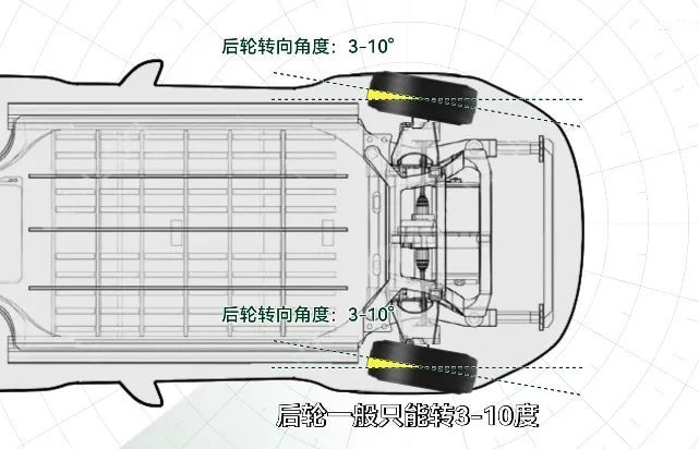 说到转向,咱们一般的车都是通过前轮实现,此时后轮是不动的。而后轮转向技术,就是让后轮做到和前轮相似的转向效果。