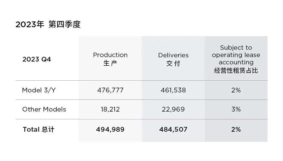 不到40万的交付数据,让特斯拉 回到了2022年下半年的水平,也是上一次销量在40万以下的时候,2022年第三季度和第四季度分别售出34.4万辆和40.5万辆。