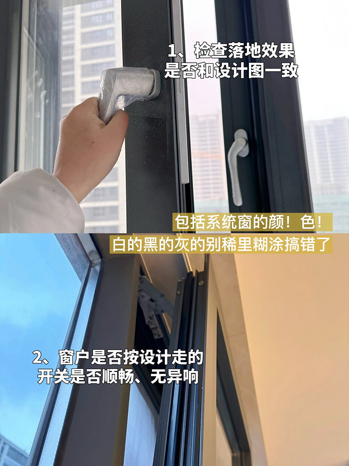 我家做的内开内倒,再看下窗户开关是不是顺畅的、无异响的,多关几次别偷懒
