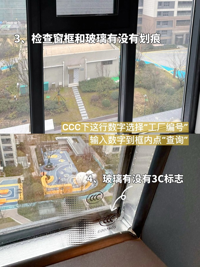 3️⃣窗框和玻璃有没有划痕