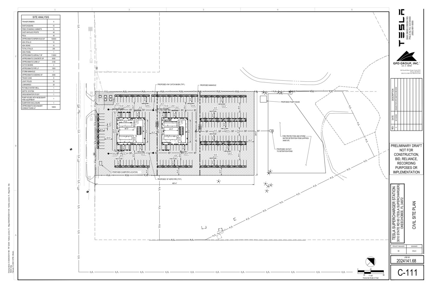 根据上个月特斯拉与奥西奥拉县 (Osceola County) 举行项目预申请会议时提交的场地规划,该超级充电站将位于 Yeehaw Junction,具体位置在 60 号州道 3010 号地块,靠近佛罗里达收费公路 193 号出口和 95 号州际公路的交汇处。