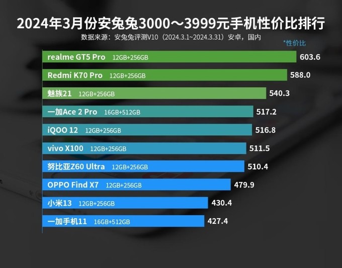 部分走高性价比路线的手机品牌也在发布旗舰手机,它们旗下的旗舰机型依然拥有着高性价比,虽然价格不是很高,但配置却比很多高价旗舰更强,例如Redmi K70 Pro、魅族21、一加Ace2 Pro等旗舰手机实力很强大,但价格才3000多元,不过这些旗舰手机还并不是目前手机行业中性价比最高的旗舰,真正性价比第一名的旗舰手机其实是realme GT5 Pro。