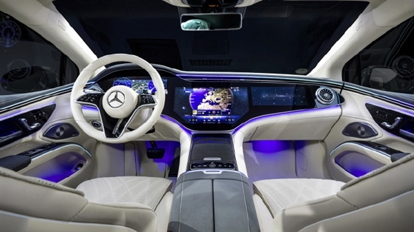 在内饰方面,新车采用了中控三联大屏设计,整个中控台由一整块Hyperscreen超级屏组成,并采用曲面屏OLED技术。