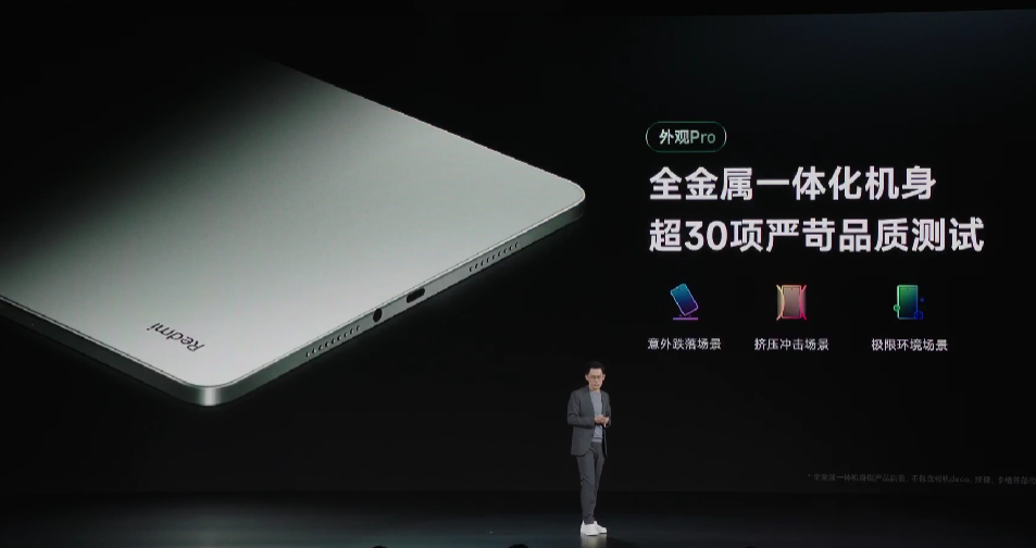 外观方面,采用全金属一体机身,超30项严苛测试,包括抗摔、挤压和恶劣环境等,具体的尺寸没有说,稍后我们再来补充。