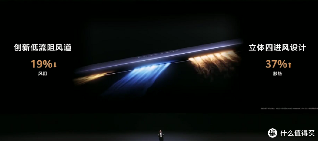 散热方面,机身是四进风口,低阻力风道,内采用流线型增压双风扇,是首款AI仿真设计扇叶,风压提升50%,风量提升34%,没有说噪音和热管散热器用料,以及实际温度表现。
