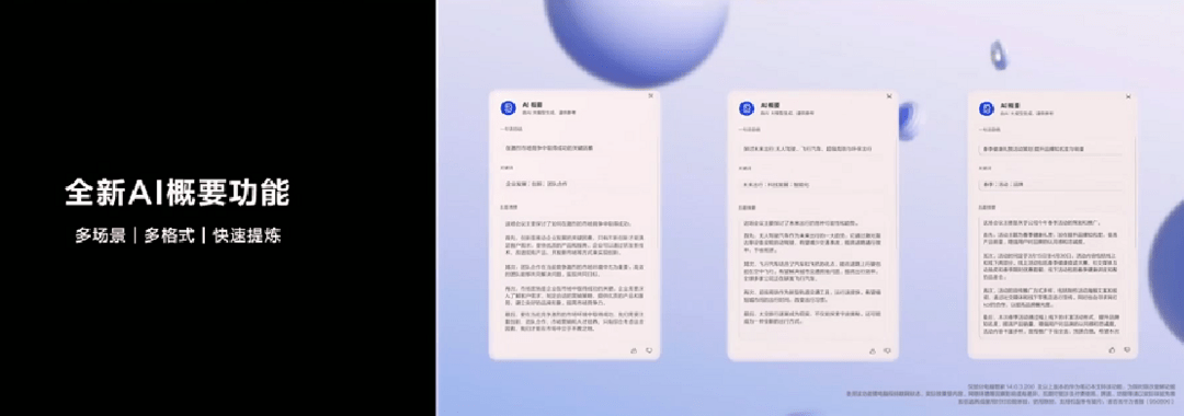全新AI摘要,基于盘古大模型,可以快速多场景、多个时候,快速提炼内容。