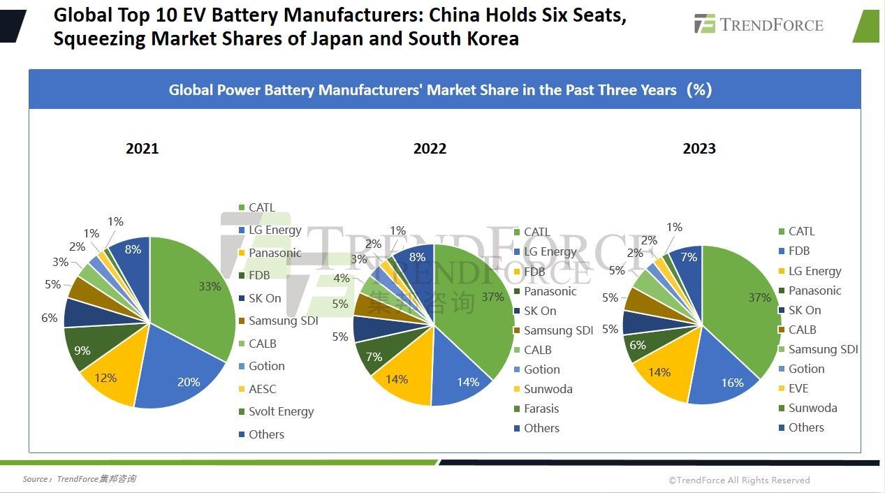 例如,松下在电动汽车电池市场的份额已降至约 6%,韩国制造商的市场份额总和约为 23%。