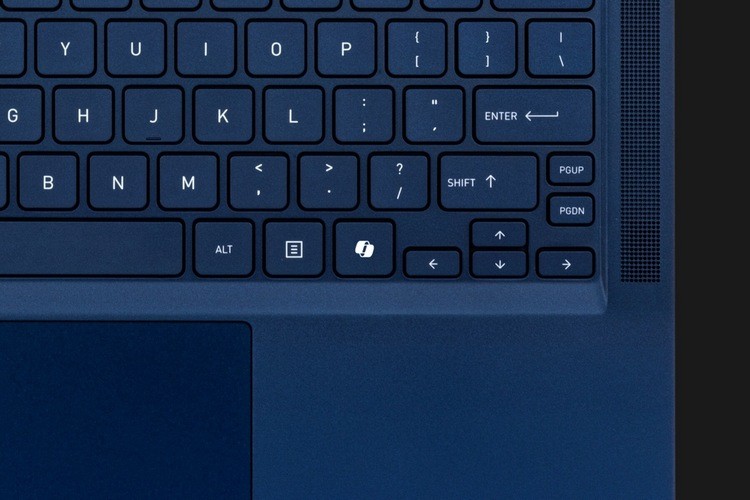 外观颜值在线,虽然是去年的设计,采用深蓝配色,配备超大触摸板,屏幕窄边框。电源按键在右上角边缘,支持指纹识别;比较特别的是,键盘两侧设有喇叭(一共4个),这种设计现在很少见了,除非是一些大型工作站,当年 ThinkPad 许多笔记本都这样设计,这种喇叭布局音质会更好。另外支持杜比全景声。