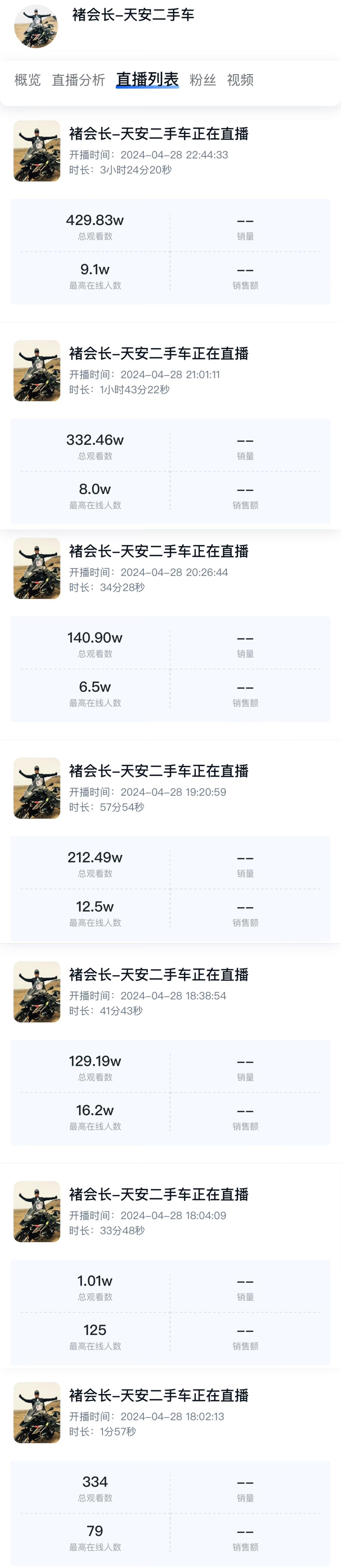 昨天从拍卖开始,褚振亮一共进行了7次直播。