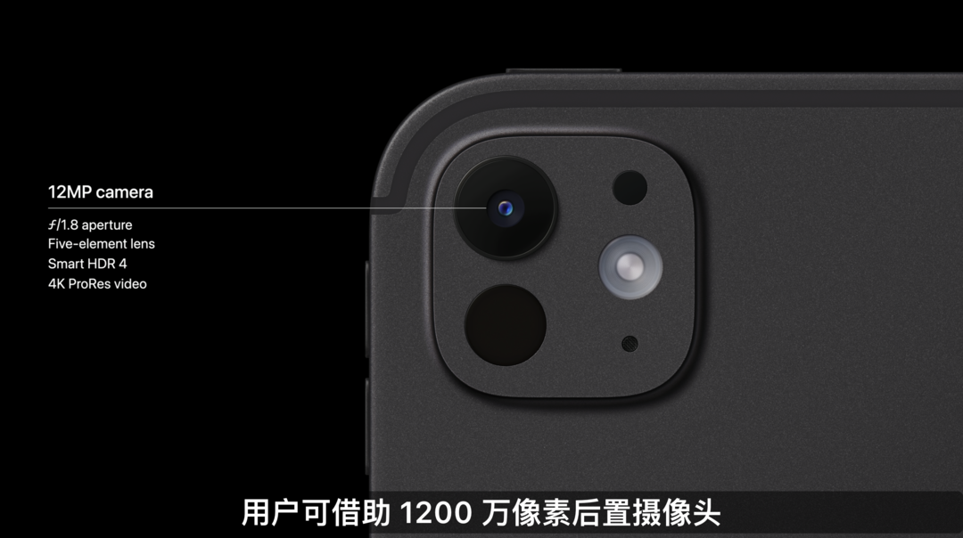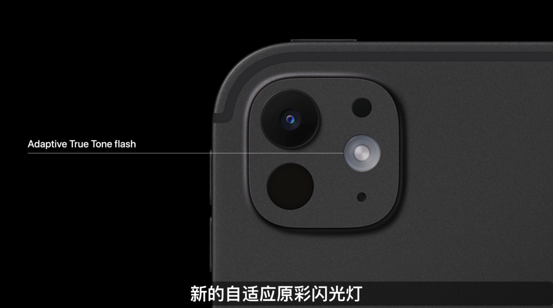 新款iPad Pro后置12MP主摄,保留了LiDAR激光雷达,还配备新的原彩闪光灯,进一步提升文稿扫描效果。而正面的12MP前置摄像头和Face ID移到了横边,支持人物居中功能。