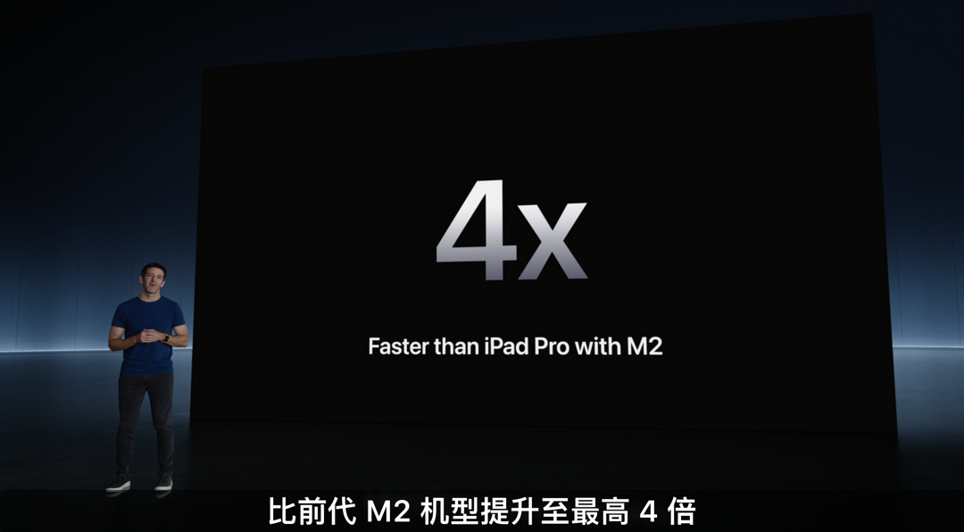 散热方面,全新iPad Pro后盖配备石墨片,同时后盖logo加入了铜材料,将散热性能提高20%。宣称比之前配备M2的iPad Pro快4倍;比初代iPad Pro快10倍。