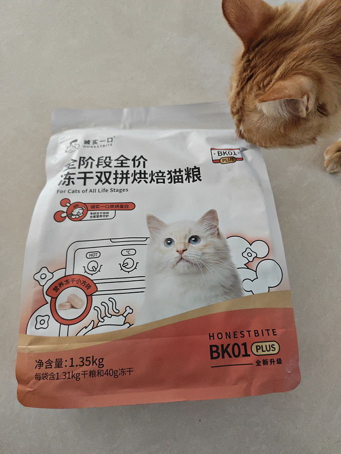 诚实一口BK01 PLUS双拼烘焙猫粮,最近大橘特别喜欢的猫粮,天天都会炫一碗,最近感觉明显长胖了!