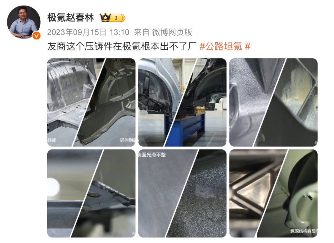 国内厂商极氪副总裁赵春林,也曾吐槽过特斯拉的 “ 压铸件在极氪根本出不了厂 ” 。