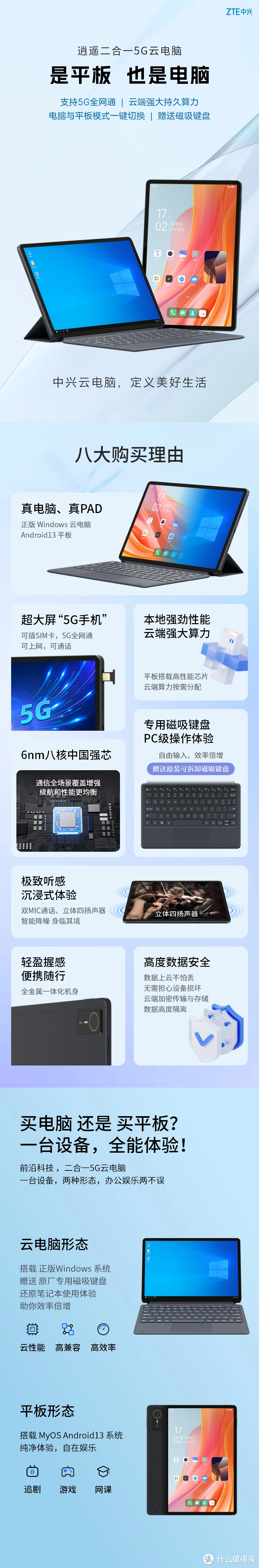 5 月 10 日快讯,中兴通讯近日在电商平台上推出了全新的二合一 5G 云电脑“逍遥”系列,这款设备独特的地方在于双模式切换功能售价为 1899 元起。