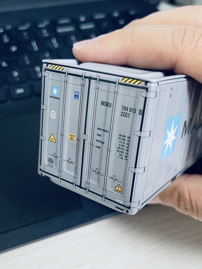 无意中刷到的一个小玩意,集装箱收纳盒,各种航运公司的箱子都有,觉得马士基的颜色比较百搭一些,先入一个试试。小小的一个放在办公桌面放一些小东西还是很方便的。