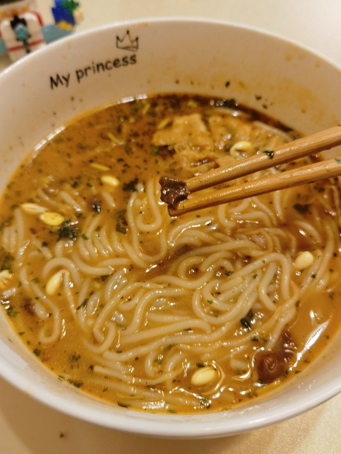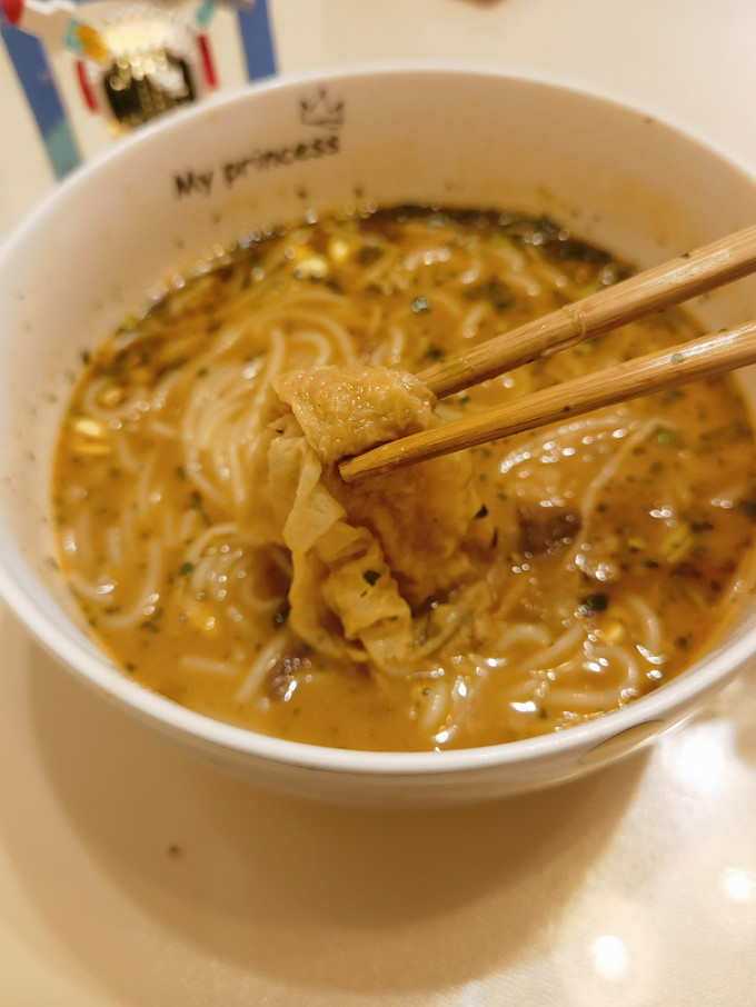次就全加进去,太辣了!我一个重庆人只加了半包,辣度还合适!(这是早上锻炼后吃的,不易太辣)3、三秒炸响铃吸满了汤汁,特美味?!(图六)