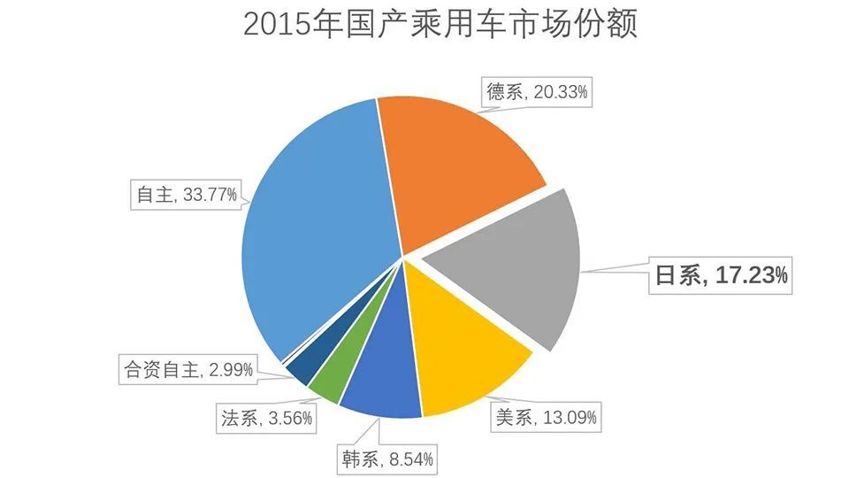 根据资料显示,2015年合资车在国内的市占率高达,66.23%,其中德系占比最高,为20.33%。