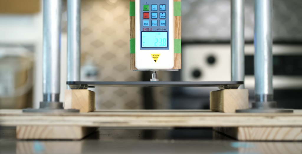 在施加的重量来到 70 磅(约 31.75 千克)时,iPad Pro 终于「不堪重负」地出现了较大程度的弯折,在重量达到 95 磅(约 43.09 千克)时发生开裂。