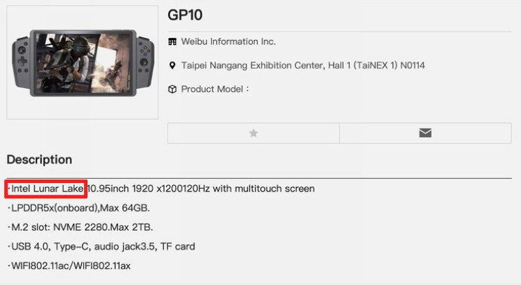 主板解决方案供应商威布发消息称,他们将在下个月的 Computex 2024 大会上,带来一款游戏掌机,叫GP10,有意思的是该机居然采用了“月亮湖”架构CPU,也就是第二代酷睿 Ultra 处理器。