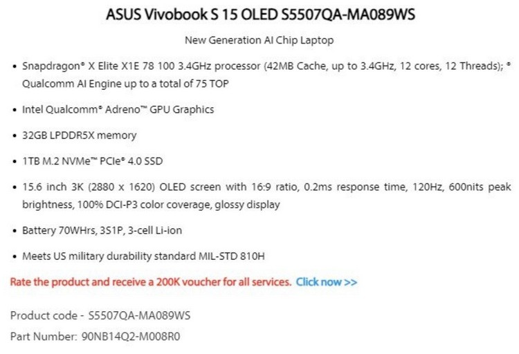 微软、三星、惠普外,华硕也准备了骁龙X 笔记本,目前华硕越南官方已经上线了新机,外观及核心配置规格已公开。
