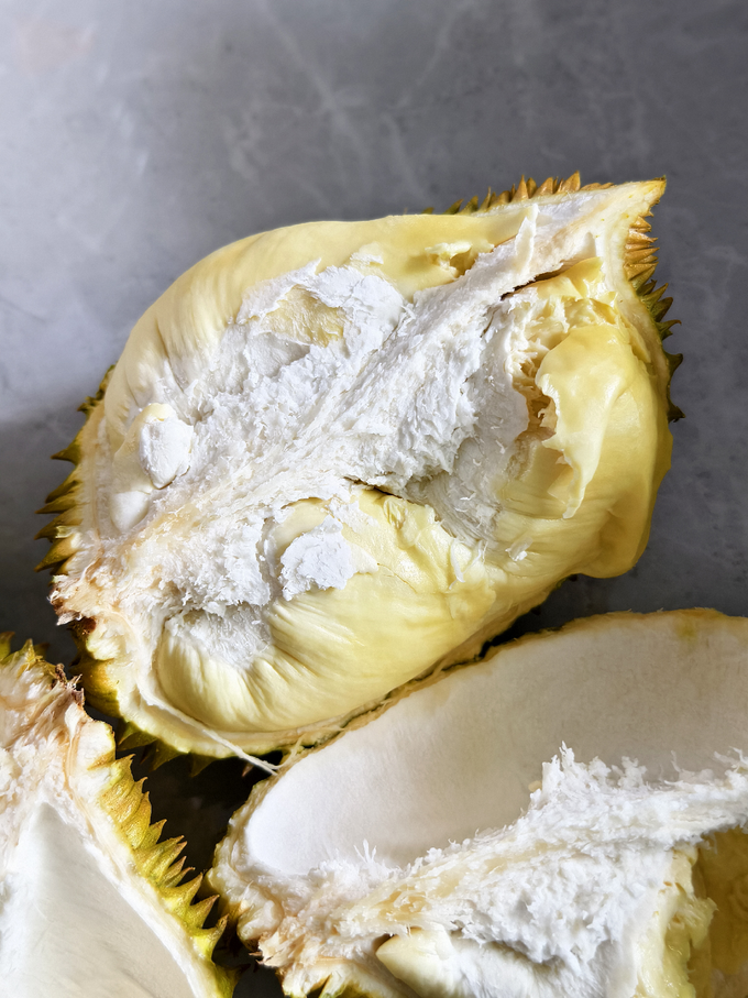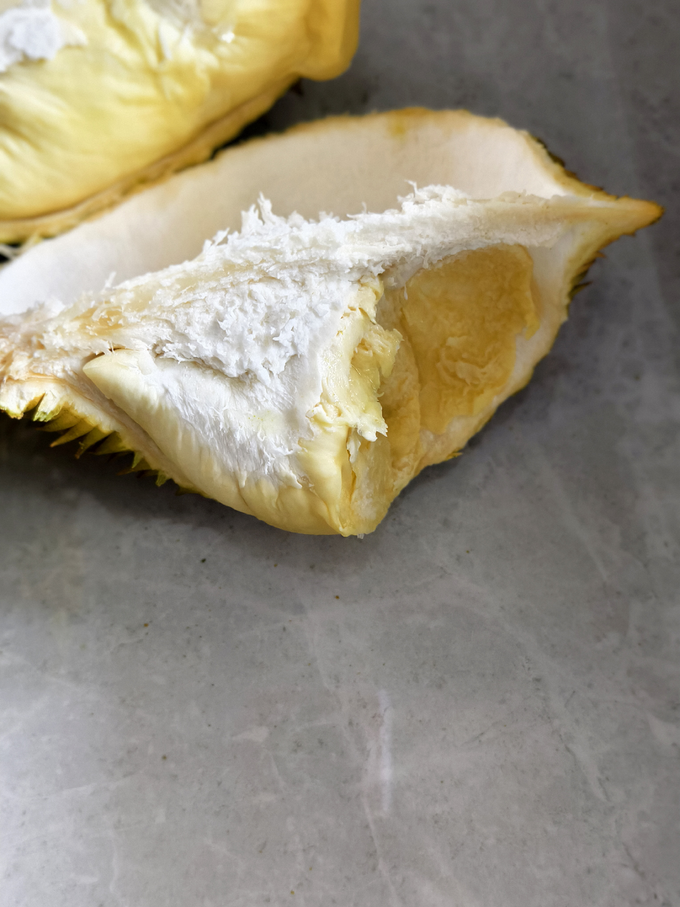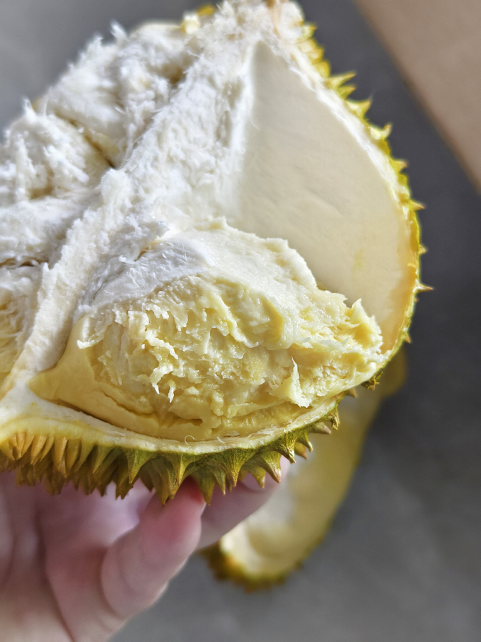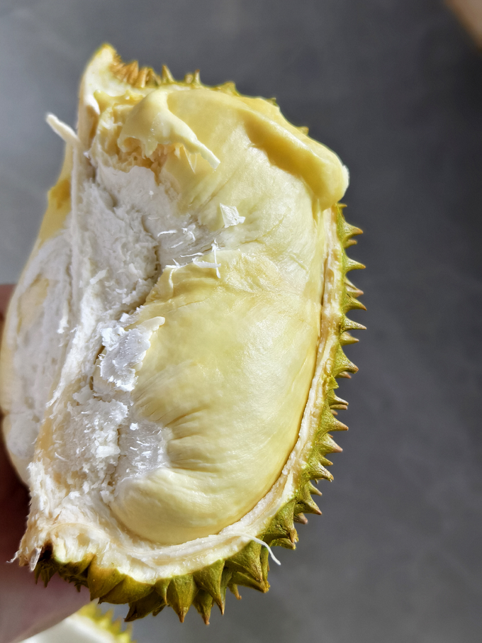 ▲开出来的是湿包果,没有干包果吃起来舒坦。但在这出肉率面前,啥都不是事儿。榴莲的核也很小,果肉软糯,榴莲特有的香气太棒了,入口甜度极高,说实话,炫到停不下来,就是这东西吃多容易上火。。。还是得适量!