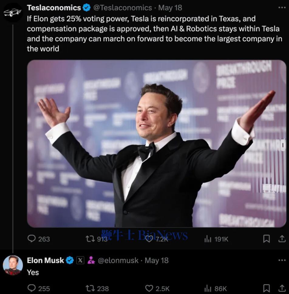 在德克萨斯州重新注册: 除了投票权之外,马斯克还确认了特斯拉在德克萨斯州重新注册的要求,这可能标志着该公司运营的战略转变。