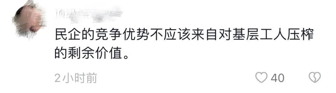 民企的竞争优势不应该来自对基层工人压榨的剩余价值。