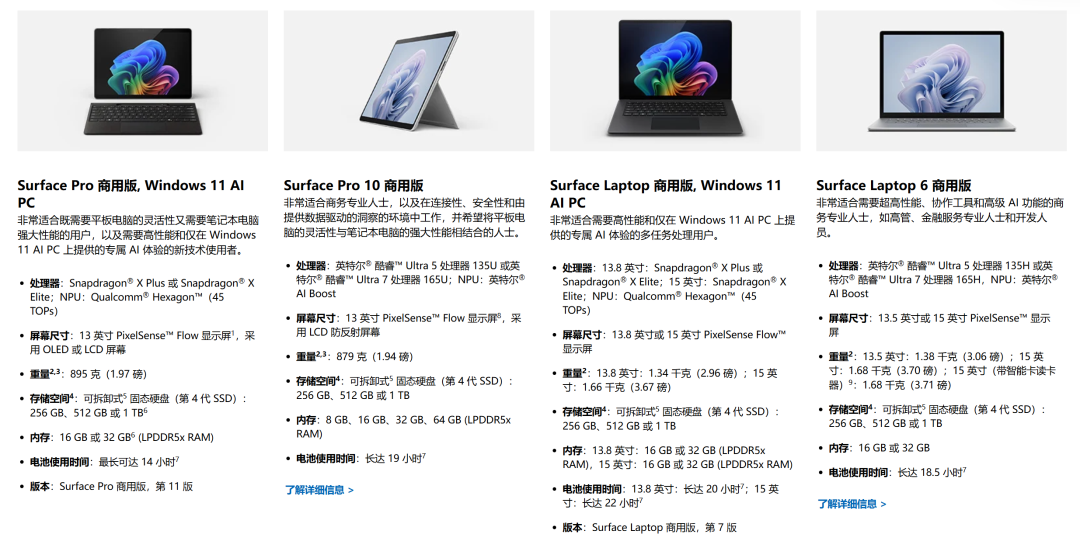 奇数(7、11)的产品用的是高通 X 系列处理器,偶数(6、10)产品用的是英特尔最新的酷睿 Ultra 处理器。