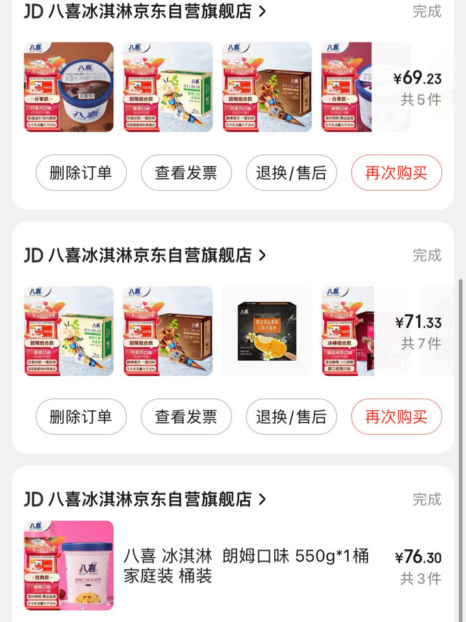 每年的夏天都是和八喜过的,只要有一次活动299-150,再叠加3件8折就能做到2折的最低价,一桶1100g的八喜能做到20元,而往往这样的双重优惠,一般就是零点以后五分钟内结束,所以看缘分,那八喜最经常的满减加赠送能做到3折的好价,刚需可以选爱吃的口味入。