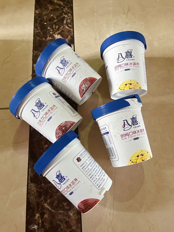 八喜桶装有大桶1100g、中桶550g、小桶283g,活动性价比最高的那肯定是1100g了,一次活动可能要3桶起,大桶最要考虑的是冰箱冷藏够不够放,朗姆口味里面是带葡萄干的,没有香草味那么甜,目前出了很多新口味,等打折了,一定全部买回来试一试。