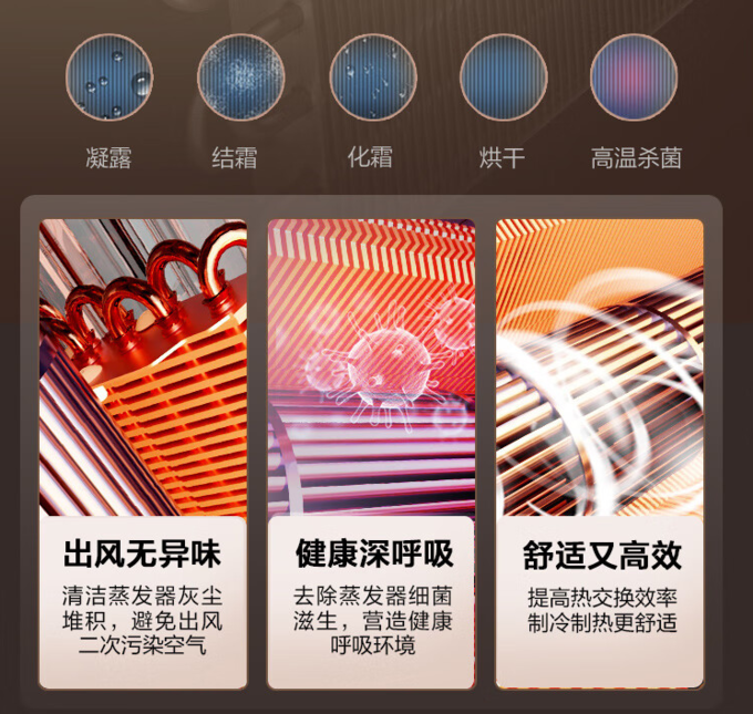长期积累的灰尘和污垢,会降低空调的制冷和制热效果,甚至会堵塞管道,影响空气流通的健康。K+风静享风管机空调还具有格力高温自清洁系统,通过凝露、结霜、化霜、烘干以及高温杀菌,5重步骤深层清洁蒸发器上的灰尘等异物,高温除菌,除尘杀菌二合一,使得空调出风更为洁净。