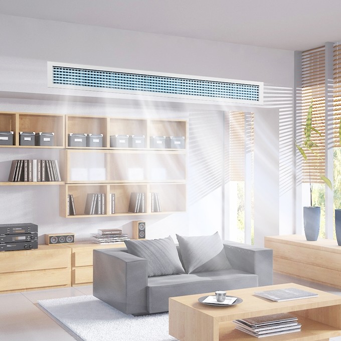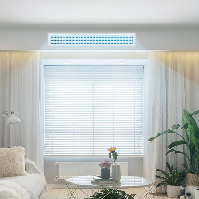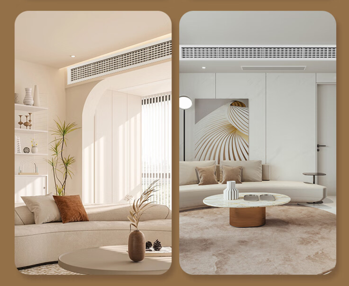 风管机内机采用隐藏式安装,将主机和管道巧妙地隐藏在吊顶或墙体内,客厅没有了立式柜机或者挂机,使得房间空间看起来更加整洁、美观,且无卫生死角。同时,出风口的材质和形状也经过精心挑选和打磨,以确保送风时不会产生过大的噪音或冷风刺激感。