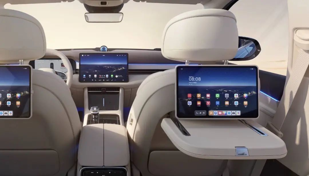 后座则多了一块「更大的平板」,最大支持 13.2 英寸 OLED 屏幕,甚至还能配合小桌板和手写笔,提供一定的生产力。