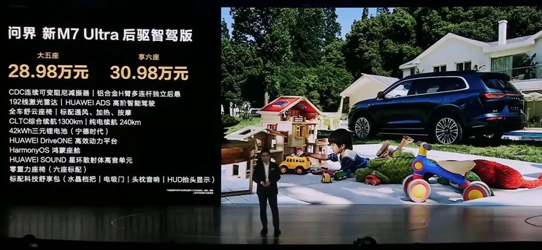 在发布会上,问界新M7 Ultra汽车正式上市,售价28.98万元起,新车共推出4款车型。