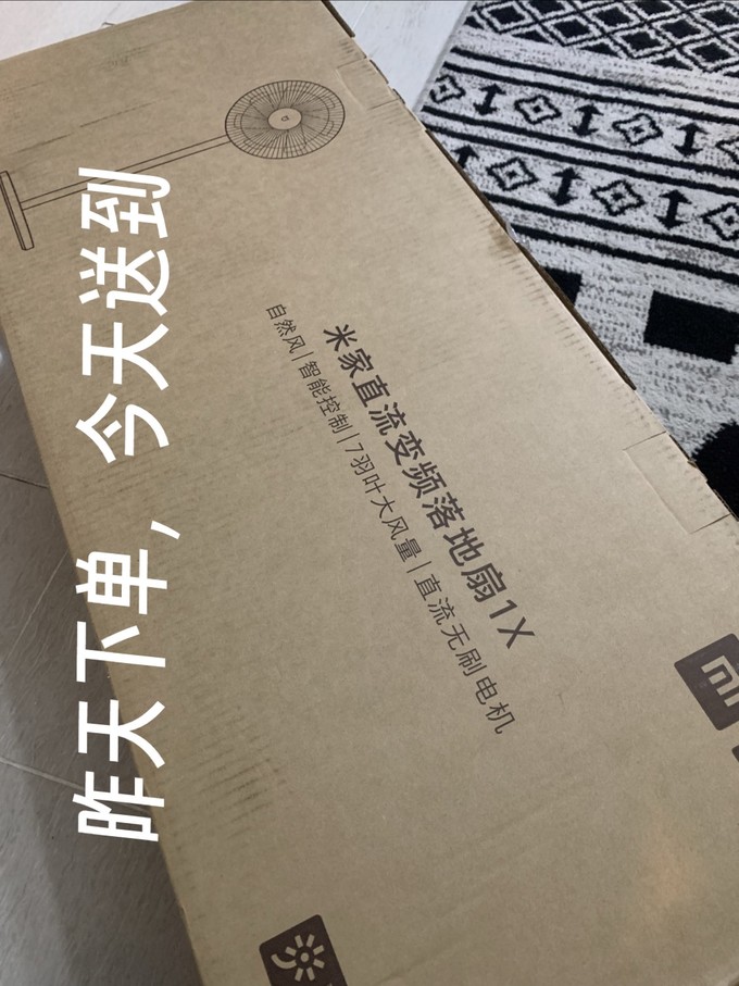 风扇今天上午就送过来了,悄咪咪的给我放在门口,下午这我才有空拿进来,暂时还没有时间安装,简单开个箱给各位看看香不香。