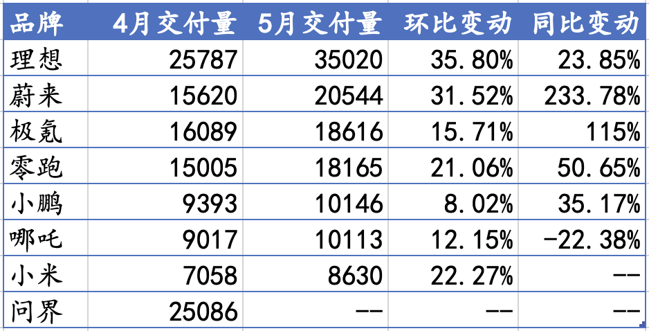 具体来看,理想汽车5月交付新车3.5万辆,同比增长23.85%。截至2024年5月31日,理想汽车累计交付77.46万辆。