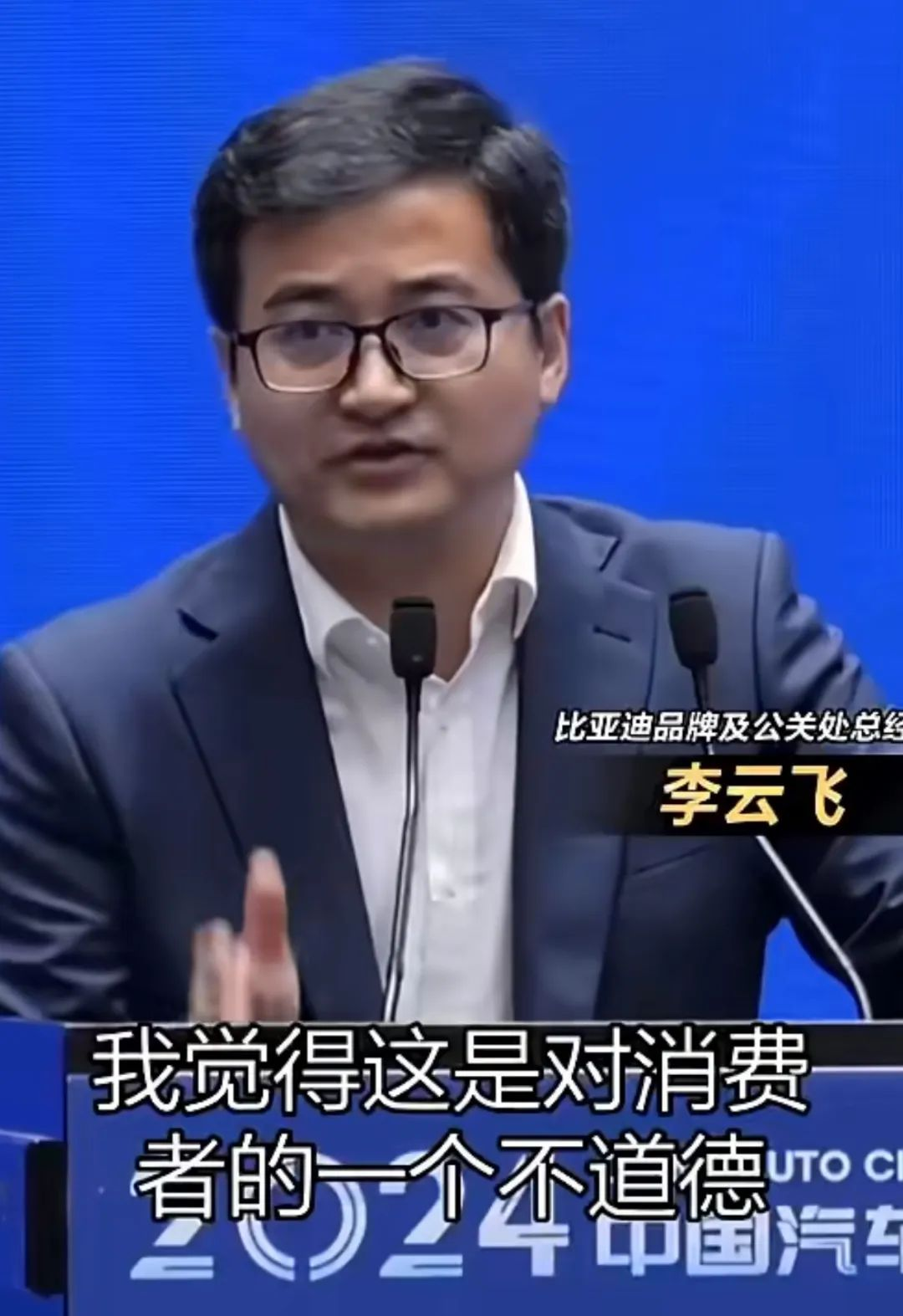 主办方也是真会安排,紧接着杨总上台的就是比亚迪公关处总经理李云飞。
