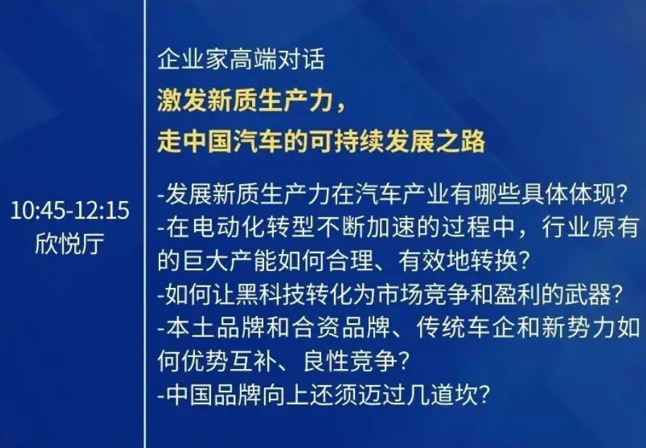 今年的议题是《 激发新质生产力,走中国汽车的可持续发展之路 》,一讲可持续发展各家车企就气不打一处来。