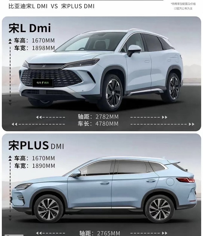 宋L dmi 长宽高分别是4780/1898/1670,轴距2782毫米,比宋plus略大一点,参考宋plus110续航目前是13.98万起,我预计121公里的最低配宋L dmi也会是14万左右起售,当然不排除后期出续航更低的版本拉低售价,毕竟宋plus还有款71公里的最低配12.98万,就看比亚迪怎么考虑了。