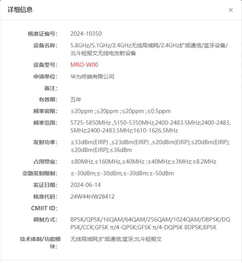 新的平板电脑型号为MRO-W00,华为去年11月发布的MatePad Pro 11英寸是首款支持双向北斗卫星消息的平板,本次新品猜测会将卫星通信下放到标准版机型中。