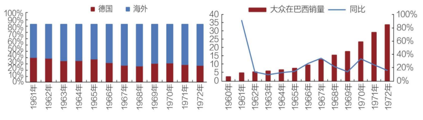 图:大众汽车海外销量占比及巴西地区销量,来源:《汽车的商业逻辑》